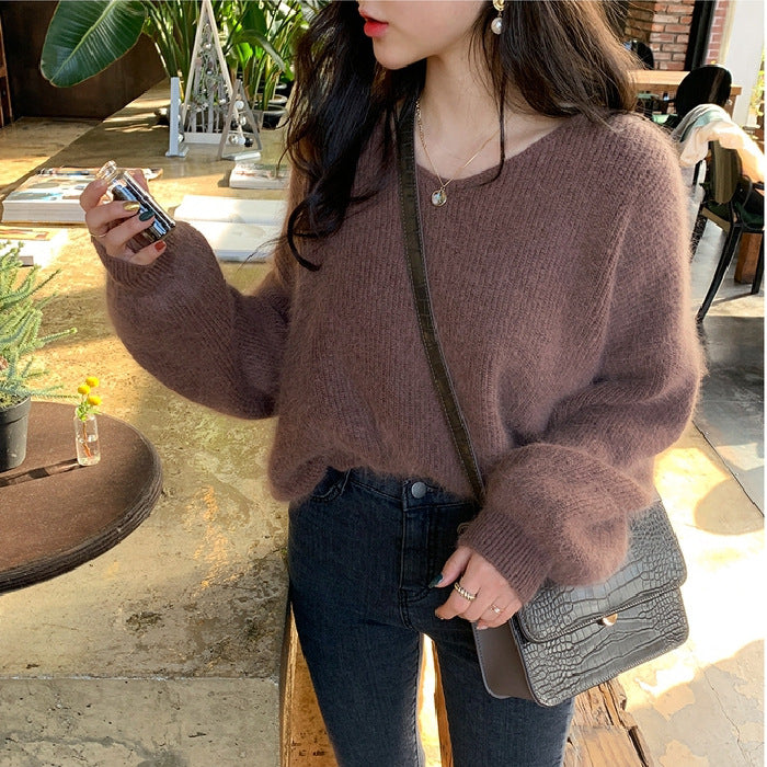 Mohair Pullover V-neck Padded Sweater Woman
