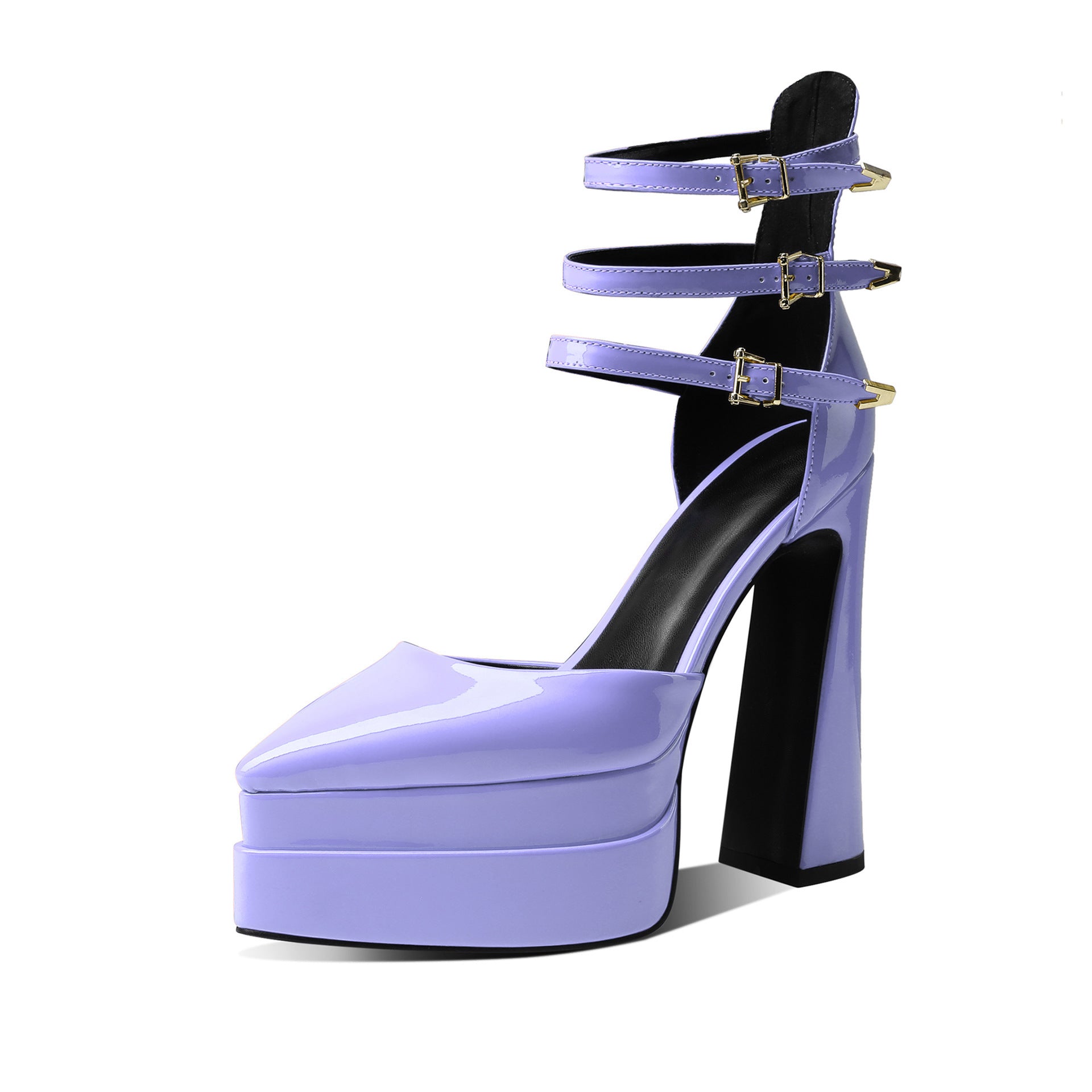 Women's Fashion Casual Solid Color Waterproof Platform Thick Heel Pointed Sandals